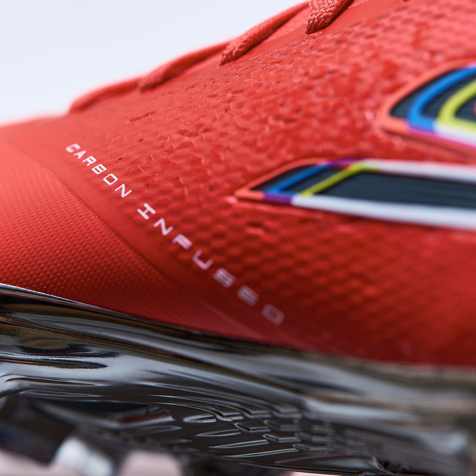 De gepatenteerde, met koolstof versterkte voorvoetplaat biedt een extreem hoge stijfheid-gewichtsverhouding, wat zorgt voor stabiliteit en een ongekend energierendement.